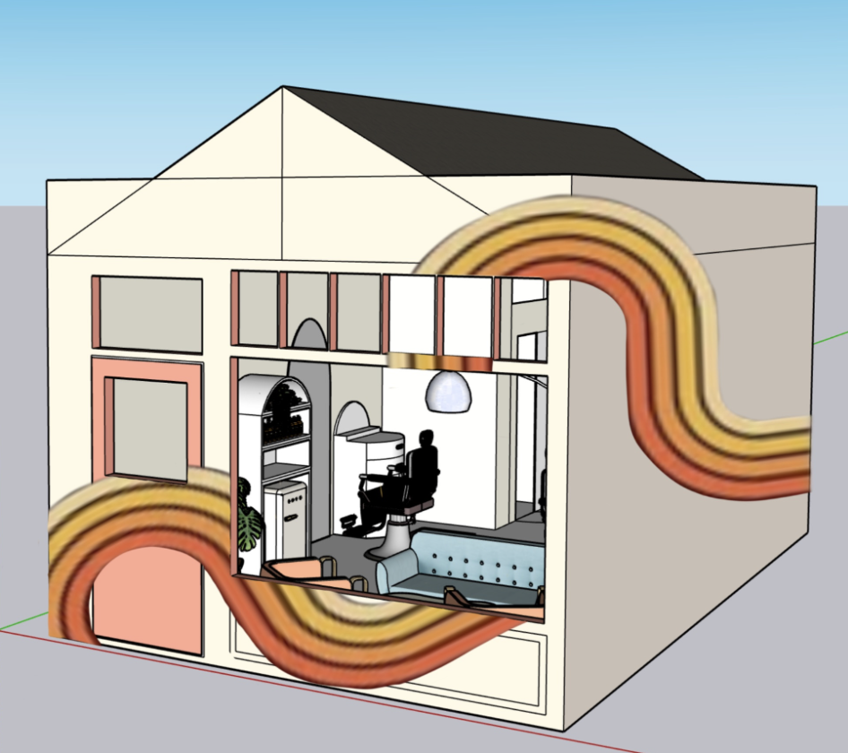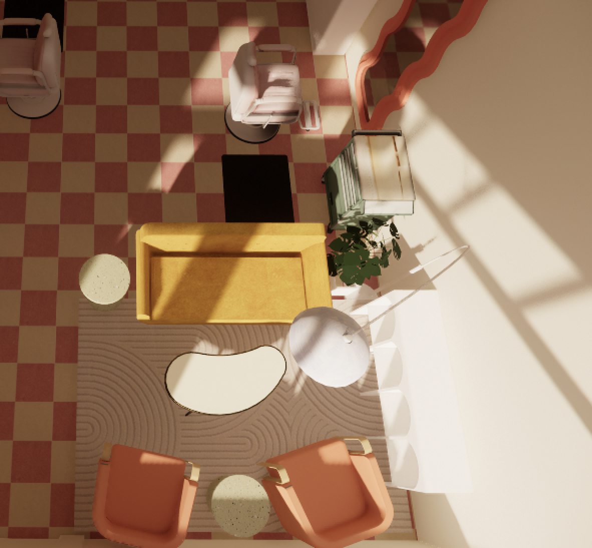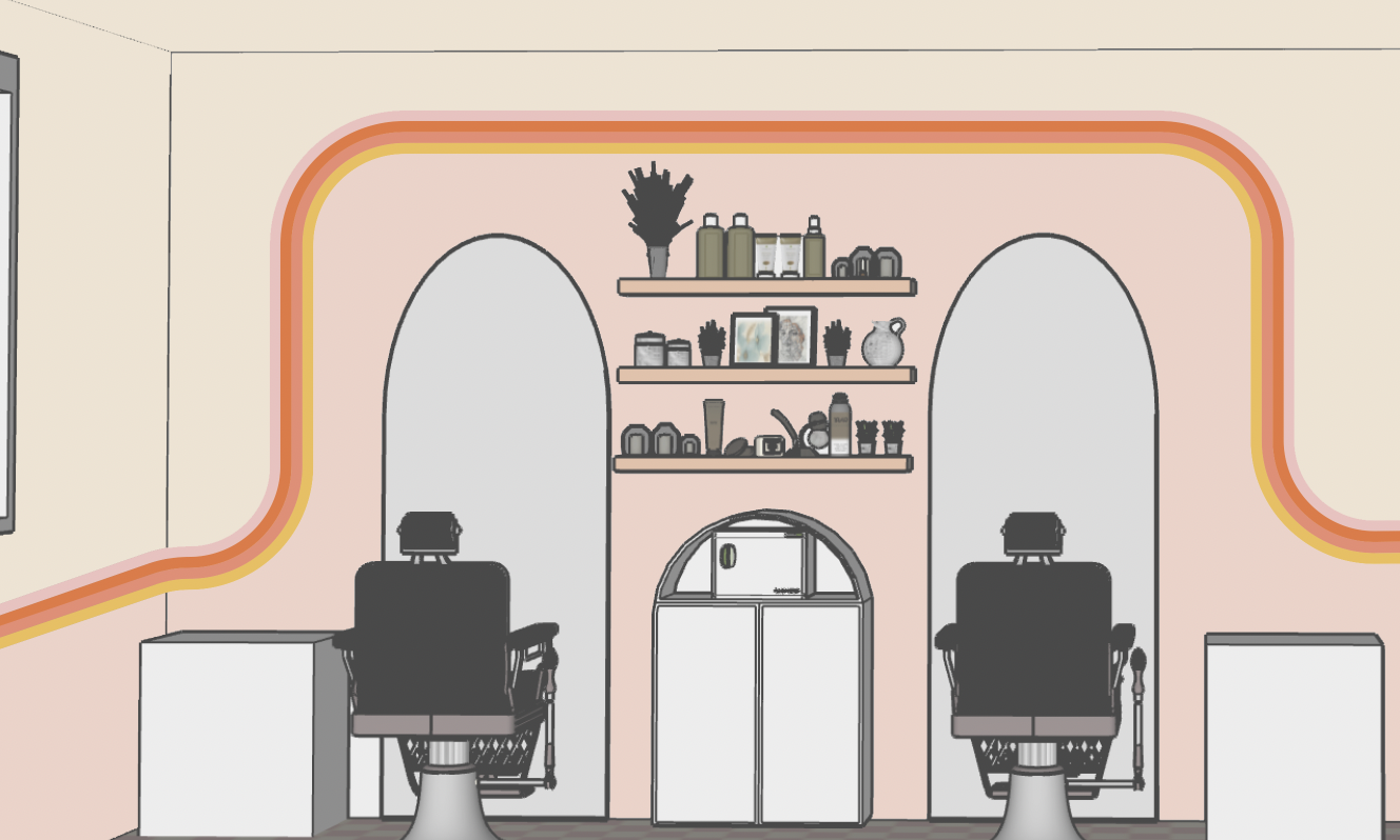 Our client envisioned a bright, airy space that captures the spirit of 70s skate shops, and we brought that vision to life with a lively yellow-to-pink color palette. The design emphasizes open, inviting atmospheres with playful retro elements, creating a unique and energetic environment for clients to enjoy.